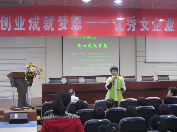 11月16日下午,由扬州市妇女联合会、betway必威中文版 团委、扬州市女企业家协会联合主办的“优秀女企业家进校园报告会——创业成就梦想”在我校315报告厅举行。市妇女联合会副主席杨为名,校团委书记林峻,扬州市女企业家协会副会长、扬州扬杰电子科技股份有限公司董事长梁勤,市女企业家协会理事、扬州维邦园林机械有限公司总经理袁萍等出席了本次活动。200余名在校女大学生聆听了报告会。