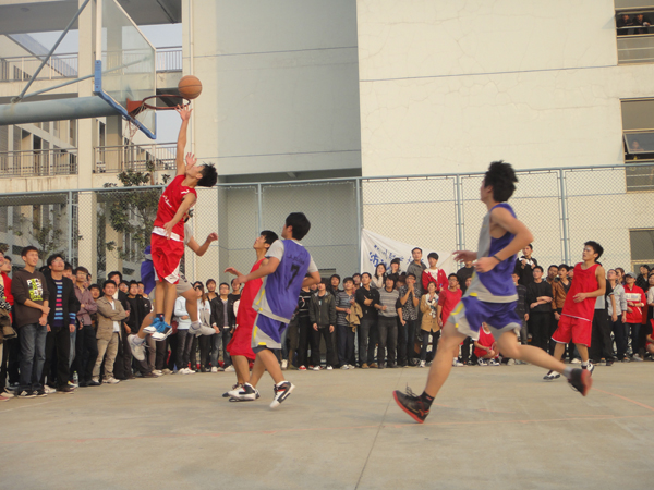 11月27日下午2:00,由校团委主办,校学生会、社团联合会承办的迎新篮球对抗赛总决赛的最后一战在教学区篮球场打响,今年的争夺冠军在纺织服装系和土木工程系之间产生。