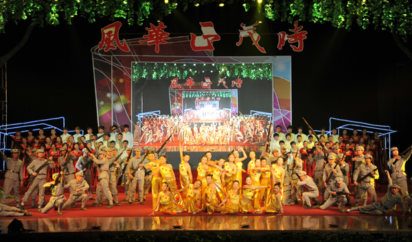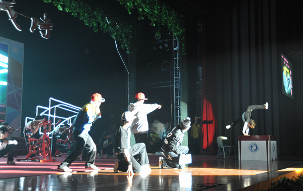 唱响青春年华,同享风华正茂。300名师生在台上魅力四射。悠扬婉转的旋律,激情奔放的街舞,特别是学生自己研制的机器人舞蹈表演,让现场观众领略了学校人才培养的硕果;悦耳的歌声,优美的舞姿,寓意深刻的原创音乐快板,洋溢着青春激昂的气息,启迪着青年学子奋发有为,更表明了20,000多名师生带着憧憬与梦想,乘风破浪,展望未来,携手创造十二五的新辉煌。