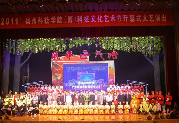 12月9日晚,我校2011年“风华正茂时”科技文化艺术节开幕式在扬州市会议中心举行。扬州市委常委、宣传部长袁秋年,市委常委、军分区政委王松林,市人大常委会副主任孙永如,副市长董玉海,市政协副主席朱正海,学校全体校领导、中层干部、教师代表和2011级学生代表1000多人参加了开幕式。