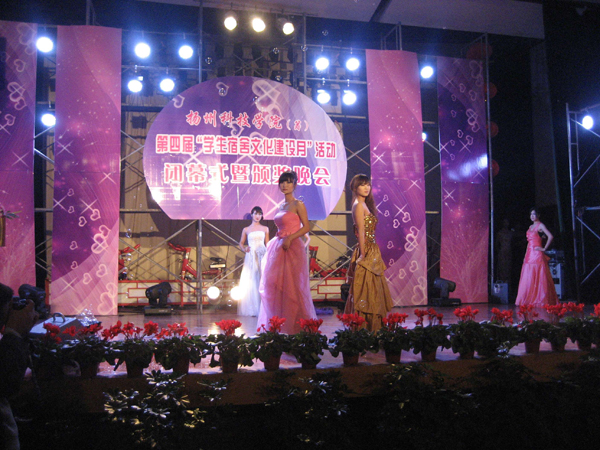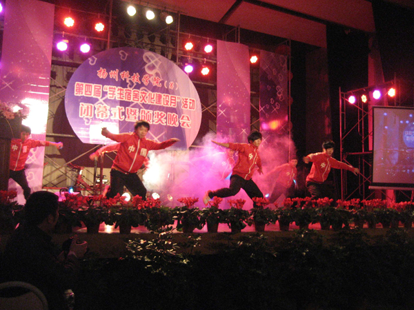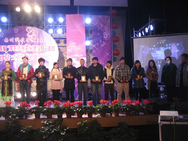 12月6日晚7时,由我校学生生活管理委员会主办,后勤服务总公司、学生处、团委共同承办的2011年学校第四届”学生宿舍文化建设月”活动闭幕式暨颁奖晚会在瘦西湖校区音乐厅举行。校领导张网女、许金如、蒋树山、刘建伟、刘宏出席晚会现场。相关部门领导、各院系书记出席了本次活动。参加本次活动的还有在“学生宿舍文化建设月”活动中获奖的学生代表和部分在校学生。