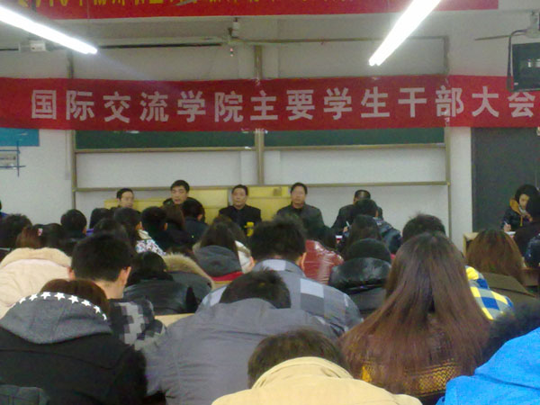 2月19日下午,国际交流学院学生干部大会在实验楼C201教室召开。该院院长王天国、党总支副书记孙志林等院领导和全体学生干部100多人参加了会议。