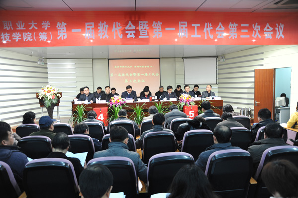 3月17日,betway必威中文版 、扬州科技学院(筹)第一届教代会暨第一届工代会第三次会议在行政楼315报告厅隆重召开,133名正式代表、32名列席代表出席了会议。