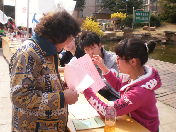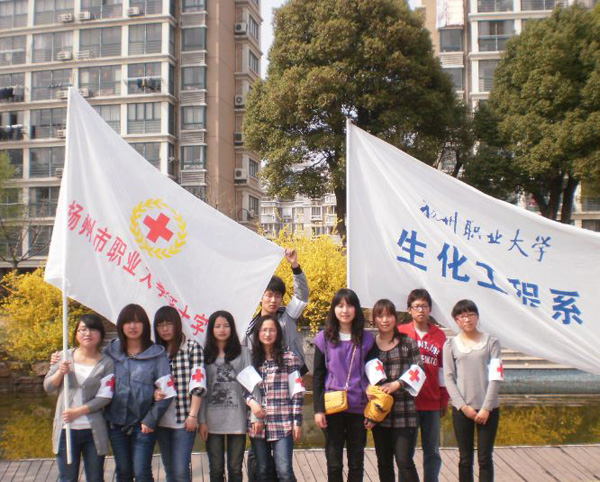 4月6日下午,生化工程系代表学校参加了由市红十字会、广陵区红十字会主办的“博爱在扬州·关爱农民工”走进文昌花园社区活动。