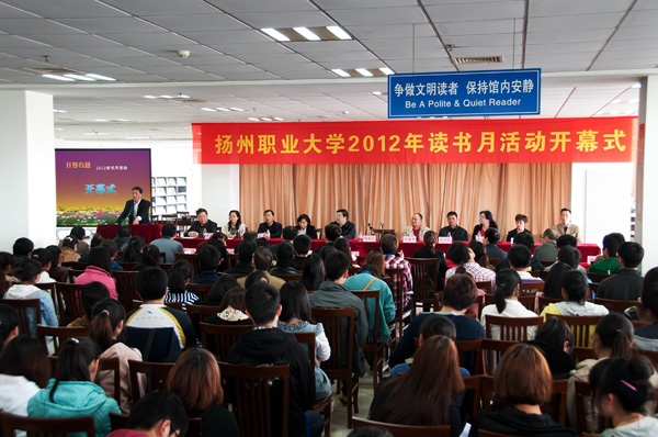 为营造奋发向上、清新高雅的校园文化氛围,促进优良学风校风的形成,学校图书馆、学生处、团委、宣传处、教务处、工会、关工委、各院(系)联合举办的“开卷有益·2012读书月”系列活动于4月17日下午在图书馆拉开了帷幕。校党委副书记、副校长林道立,校党委副书记许金如,校纪委书记刘建伟,主办方负责人,以及各院(系)党总支书记、团委书记、师生代表约400多人参加了开幕式。