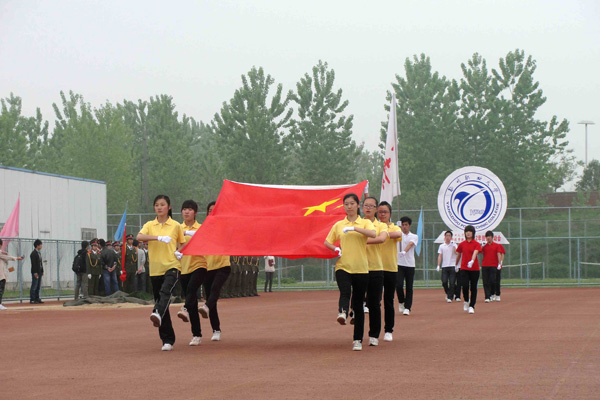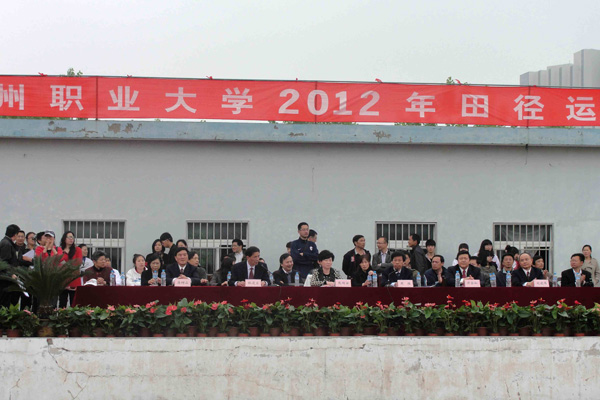 4月19日上午,阳光明媚,春光正好.我校2012年田径运动会在主校区田径场上拉开帷幕。校领导、各院(系)和各部门负责人以及1200余名学生满怀激情地参加了开幕式。