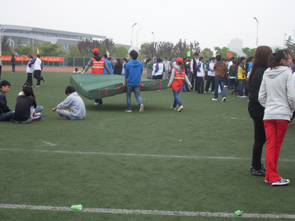 比赛场地中最显眼的莫过于身穿红马甲,头戴小红帽的志愿者。志愿者们不仅要维护比赛场地的秩序还要帮忙搬运比赛所需器材,他们最先到达操场,也最后离开操场。校报学生记者团纷至沓来的稿件让广播台的同学们忙得不亦乐乎,播音员甜美、洪亮的嗓音始终回响在整个操场。