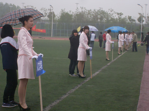 20日下午,当运动会比赛项目结束,天空早已下起了淅淅沥沥的小雨,乍暖还寒,不少衣服单薄的同学冷得瑟瑟发抖。作为闭幕式上各院(系)广播操比赛的引导员,担任礼仪的同学们仍坚守在自己的岗位上。当问及引导员沈颖在这样的环境下工作有何感想时,沈颖会心一笑:“学生本来就是要为学校做出点贡献嘛,而且能让运动会顺利进行我们做的这些也不算什么啊,大家都付出挺多的。”
