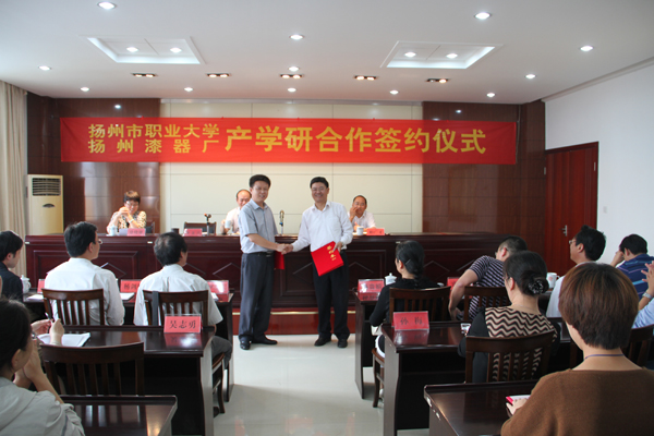 9月19日下午,扬州漆器厂与扬州职业大学经贸学院签署了长期战略合作协议。扬州漆器厂领导及全体中层干部和扬州职业大学经贸学院全体院领导及相关老师出席了签约仪式。协议本着“优势互补、互利互惠、紧密合作、共同发展”的原则,扬州职大将为扬州漆器厂在财务管理、市场营销、税务筹划等多方面提供咨询及决策建议,扬州漆器厂则为扬州职大经贸学院师生提供生产实习等相关条件。