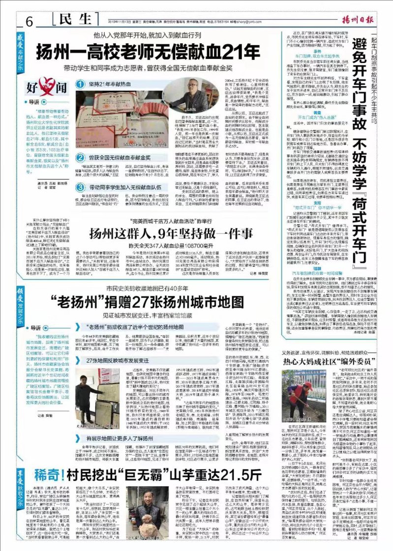 【扬州日报】扬州一高校老师无偿献血21年