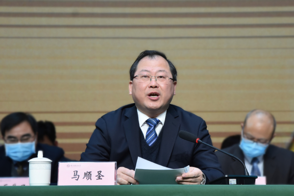 马顺圣在讲话中指出,2021年是中国共产党建党100周年,也是“十四五”规划的开局之年,在校党委、行政和全校教职员工的共同努力下,学校坚定不移抓好立德树人这一固本工程,牢牢把握办学核心指标,努力克服疫情带来的不利影响,多项工作取得历史性突破,获江苏省教学成果奖一等奖,入选江苏省高水平高等职业学校培育单位。他强调,2022年,是扬州市的“攻坚突破年”,也是我校攻坚克难、勇毅前行的一年,要在内涵建设、人才队伍建设、硬件提升和对外合作、制度保障等方面取得新突破,推进各项事业高质量发展。一是内涵建设取得新突破,学校高质量发展、高水平培育、高层次提升必须突出内涵建设、突出教学科研双轮驱动,教学科研工作又必须驱动学校各项事业高质量发展。二是人才队伍建设取得新突破,必须把人才队伍建设放在学校工作的关键位置。毫不动摇推进“双百工程”和“双师工程”,进一步完善师资队伍建设的长效机制,引进和培养高素质人才,充实和提高干部管理队伍与师资队伍。三是硬件提升和对外合作取得新突破,加大投入,确保基本建设进度和设备投入力度,通过对外合作争取资源,不断增强广大教师服务地方经济社会发展的意识,努力形成学校事业与地方经济社会发展良性互动、合作双赢的大好局面。四是制度保障取得新突破,把完善教学科研政策作为激发创新活力,提升教学科研创新能力的根本保障,充分调动和保护广大教师开展教学科研工作的积极性、主动性和创造性。马顺圣强调,职业教育迎来新的发展机遇期,大家要以高度的责任感、使命感,进一步坚定信心,振奋精神,攻坚克难,勇毅前行,为实现学校高质量发展、高水平培育、高层次提升而努力奋斗,以优异成绩迎接党的二十大胜利召开。