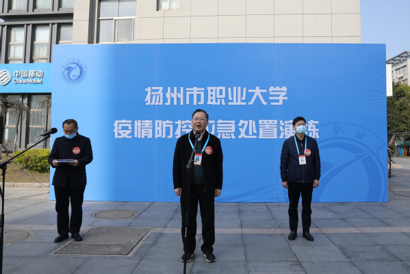 为切实提高学校疫情防控应急处置能力,4月2日上午9时,学校在生活区20号公寓楼西侧广场开展校园疫情防控应急处置演练。党委书记马顺圣,党委副书记、校长潘锦全,纪委书记黄华明,副校长吴书安等校领导,邗江区教育局王云、仲英伟,新盛街道警官周金威等出席活动,活动由副校长陈亚鸿主持。