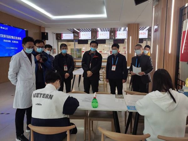 在学校中转货场,潘锦全详细了解人员车辆出入和管控情况,强调商铺商品物资进校后静置及上架时间要严格执行防疫规定。在第一食堂,潘锦全观看了突发新冠肺炎疫情物资保障、抗原检测分项应急演练,并指示后勤管理处通过短视频方式开展师生自我抗原检测培训,普及抗原检测注意事项,方便大家反复学习。在生活物资储备点,潘锦全查看了米、面、油等大宗食材储备情况,并要求分类规范安全储存各类物资,注意防潮、防霉、防变质,确保常态防控和应急防控时充足供应。