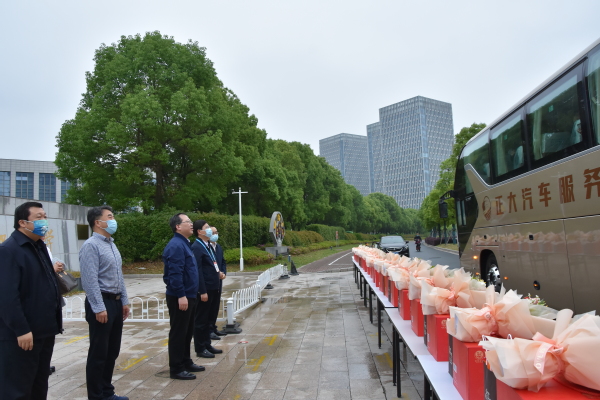 5月10日早晨,我校32名援苏医疗队成员在结束援苏10天和集中隔离14天后,平安归来,学校举行了简朴而庄重的欢迎仪式。党委书记马顺圣出席仪式并讲话,党委副书记、校长潘锦全,党委副书记、副校长许金如,副校长陈亚鸿以及学校办公室、工会负责人等参加了欢迎仪式。