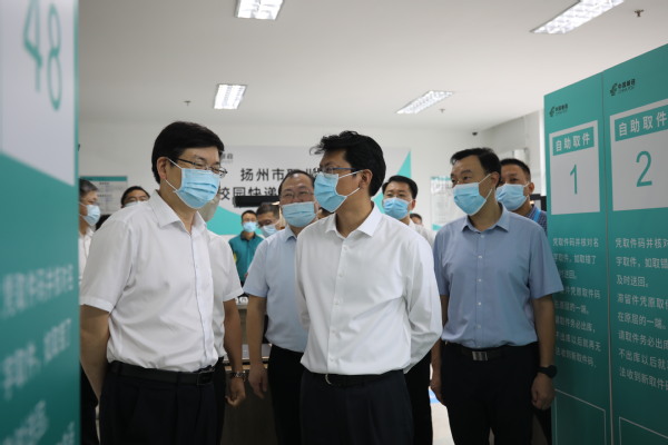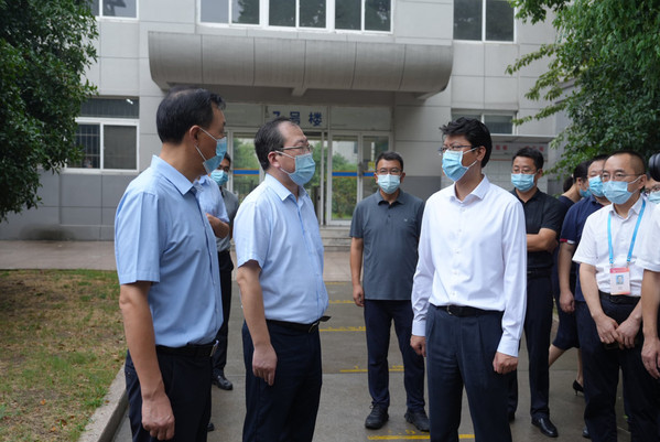 8月27日上午,市长王进健到我校检查疫情防控、安全生产等开学前准备工作。市政府秘书长徐志刚,市教育局、市卫健委、邗江区主要负责人,学校党委书记马顺圣,党委副书记、校长林刚,党委副书记、副校长许金如,副校长陈亚鸿等陪同检查。