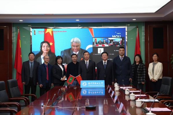 11月15日下午,我校与中马文化交流协会(CMCA)相聚云端,成功签署合作谅解备忘录,议定在马尔代夫南蒂拉杜马蒂环礁的哈尼马度岛建立中马文化培训(交流)中心。学校党委副书记、校长林刚,副校长刘宏,国际交流合作处、发展规划处、国际交流学院相关负责人及教师代表线上参加了签署仪式。马尔代夫前驻华大使、前卫生部部长、CMCA创始人莫芮德,CMCA国际关系副总裁艾德尔,国际项目助理米芾,项目协调员穆罕默德·沙夫,媒体协调员沙哈等工作人员出席云会议。会议由刘宏主持。