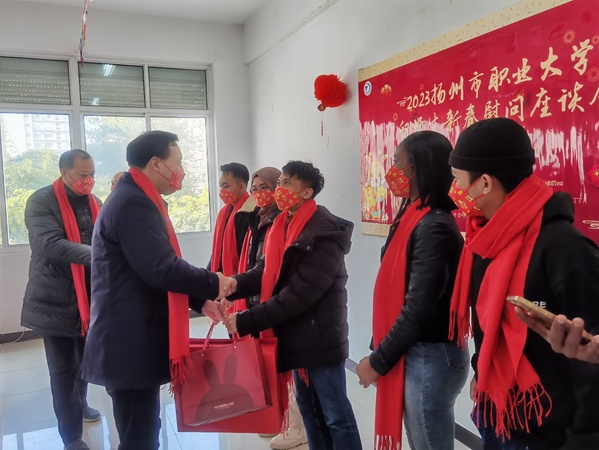 林刚表示,他非常理解同学们三年多没有回家的不易,为同学们在betway必威中文版 取得的成长进步感到高兴,同时也对大家提出三点希望:一是带着中国文化走向世界,要深刻领悟和传播中国文化;二是弘扬中国力量走向世界,要踔厉奋进形成自身核心竞争力;三是怀揣中国精神走向世界,要为建设人类命运共同体努力奋斗。最后,林刚和相关部门领导为留学生们发放新春慰问品。同学们对学校给予的关心表达了谢意,表示一定会合理安排好寒假的学习和生活,利用毕业前的时间更多地感知中国、感知扬州这个好地方,加深对中华文化的了解,做文化交流的友好使者。