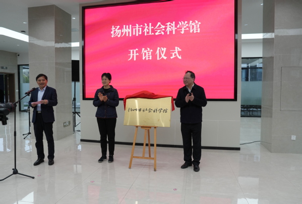 3月17日下午,扬州市社会科学馆开馆仪式在我校科技综合楼三号楼举行,扬州市社会科学馆如期建成并面向社会开放。市委常委、宣传部部长张长金,校党委书记马顺圣出席活动并为新落成的扬州市社会科学馆揭牌。市社科联党组书记、主席晏明主持活动。