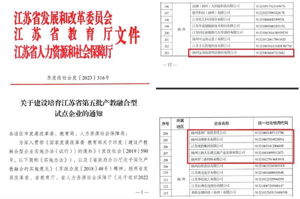 近日,江苏省发展和改革委员会、省教育厅、省人力资源和社会保障厅联合公布了江苏省第五批产教融合型试点企业名单,我校外国语学院联合申报的扬州金泉旅游用品股份有限公司、艺术学院联合申报的扬州漆器厂有限责任公司、资源与环境工程学院联合申报的扬州洁源排水有限公司、纺织服装学院联合申报的江苏虎豹集团有限公司、旅游学院联合申报的扬州江扬天乐湖文旅产业发展有限公司、生物与化工工程学院联合申报的扬州罗兰新材料有限公司等6家企业均成功获批,并纳入江苏省产教融合型企业建设培育库。至此,我校申报并获立项的江苏省产教融合型试点企业累计已达16家,占扬州市全部试点企业的三分之一,位居全省高职院校前列和扬州市职业院校第一名。