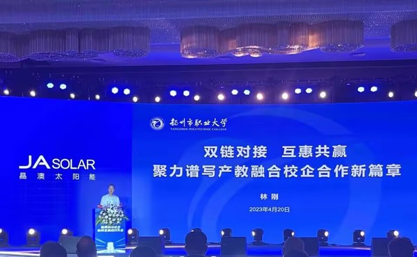 会上,林刚代表学校作以“双链对接互惠共赢聚力谱写产教融合校企合作新篇章”为主题的交流发言。他指出,学校长期以来一直积极推进产教融合、科教融汇,与晶澳开展了深度合作,希望双方能够以本次签约为契机,继续深化产教融合,加大合作力度,共同打造校企命运共同体。
