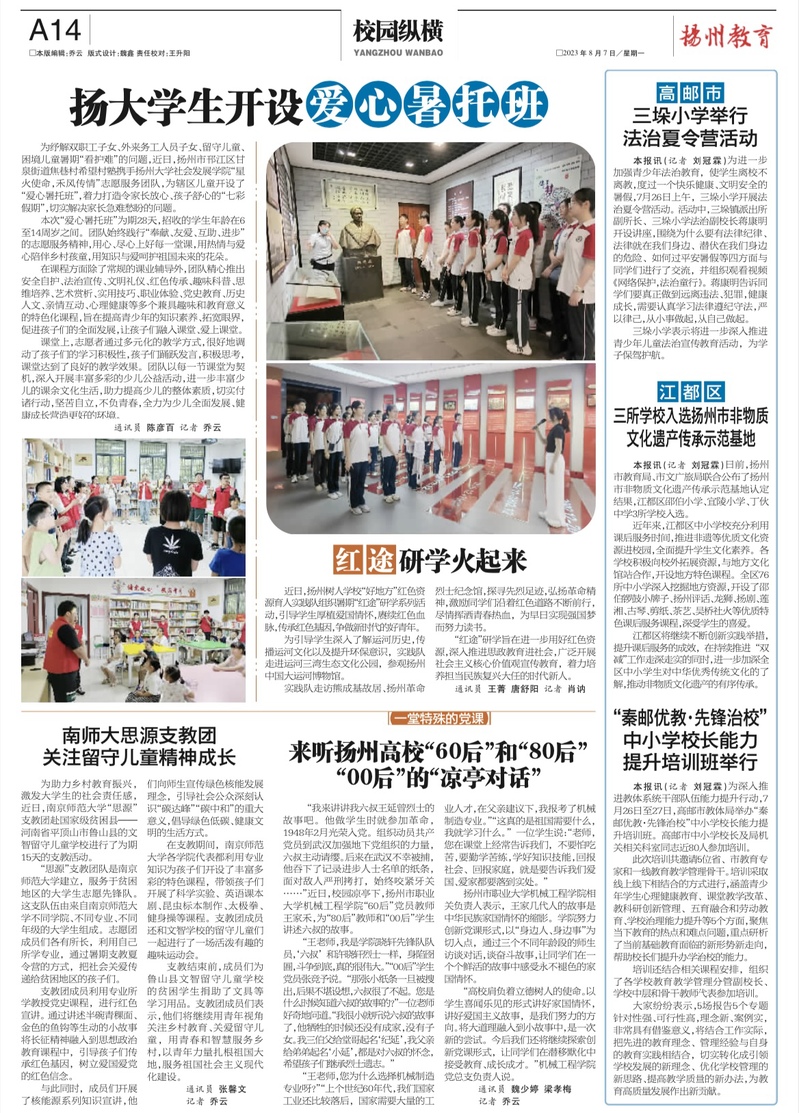 【扬州晚报】来听扬州高校“60后”和“80后” “00后”的“凉亭对话”