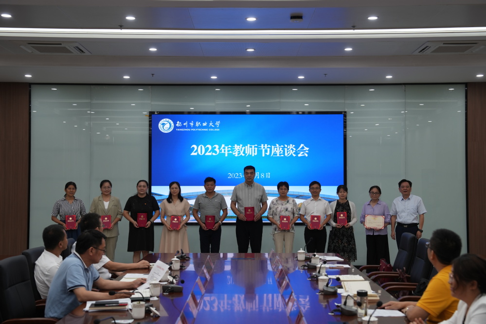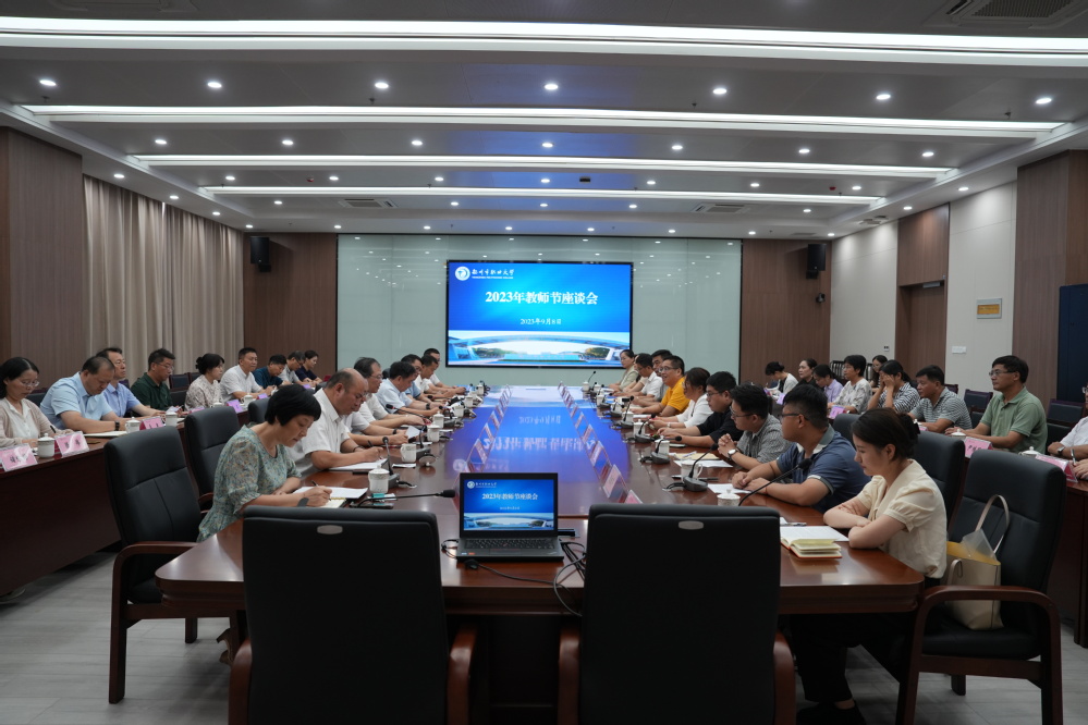 9月8日上午,在第39个教师节来临之际,学校在科技综合楼301会议室举行教师节座谈会。全体校领导出席会议。会议由党委委员、副校长陈亚鸿主持。学校第三届育人模范,教师代表以及有关部门主要负责人齐聚一堂,共庆教师节,共叙职大事,共话教育情。