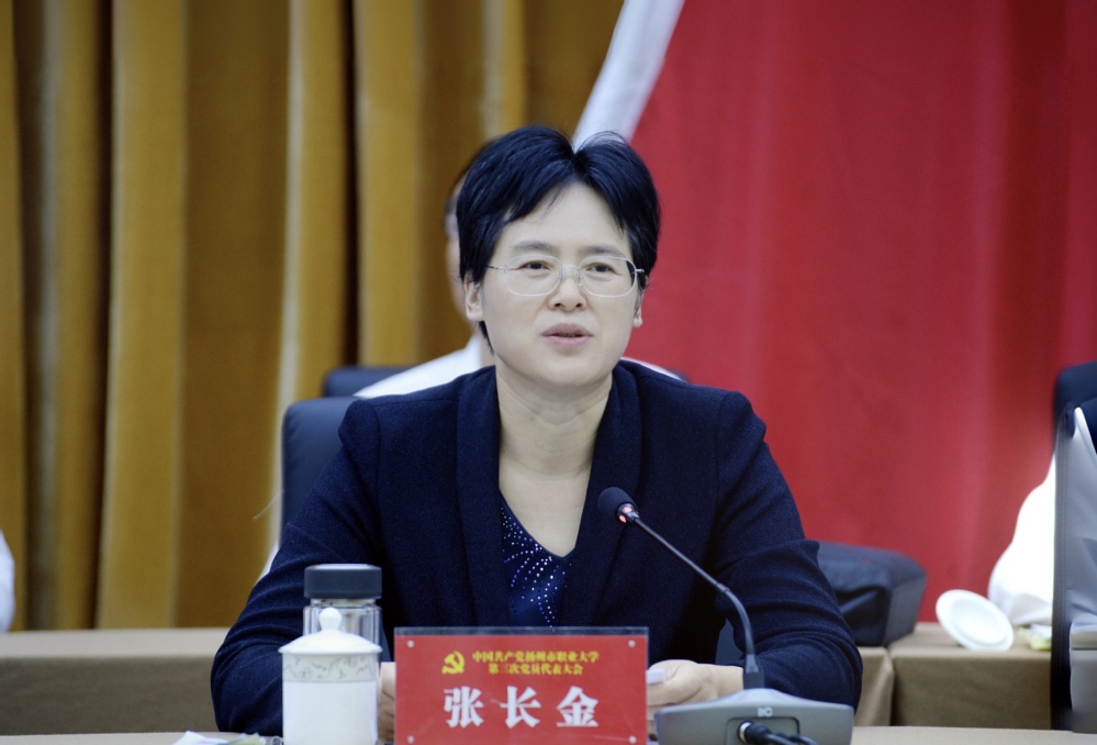 张长金代表市委对大会的召开表示祝贺,并充分肯定了我校近年来的办学实力、办学水平的显著提升以及在人才培养、科技服务等方面做出的积极贡献。她要求,扬州职大要以第三次党代会的胜利召开为契机,进一步凝聚发展共识,广泛集中各方面智慧和力量,确保学校“十四五”规划的各项任务圆满完成。她希望,全校师生员工在新一届党委的带领下,努力在推动学校事业高质量发展上开拓新局面、在服务地方经济建设和社会发展上展现新作为、在提高学校党建科学化水平上迈出新步伐,团结拼搏,奋勇争先,促进学校各项事业高质量发展,为建设新时代高水平职业大学的目标而努力奋斗,为推动扬州社会经济发展做出更大的贡献。