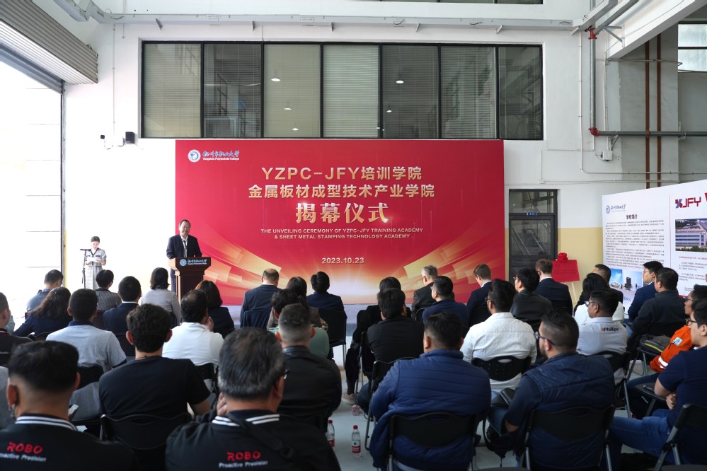 10月23日,扬州职大金方圆培训学院、金属板材成型技术产业学院在我校揭牌成立。校党委书记马顺圣在揭幕仪式上发表讲话,校党委副书记、校长周春光,金方圆公司CEO王桂海,金方圆国际CEO菲利普为培训学院成立揭牌,并启动第一批国际人才培训。首批参培学员28人,来自印度、泰国等“一带一路”国家。校党委委员、副校长花军主持活动。