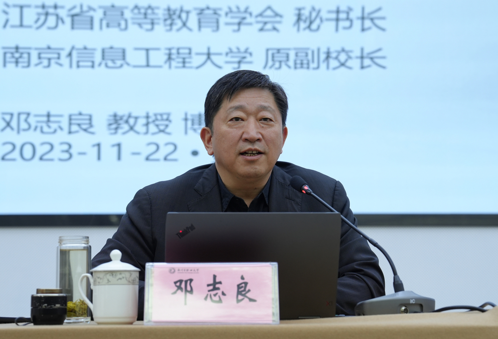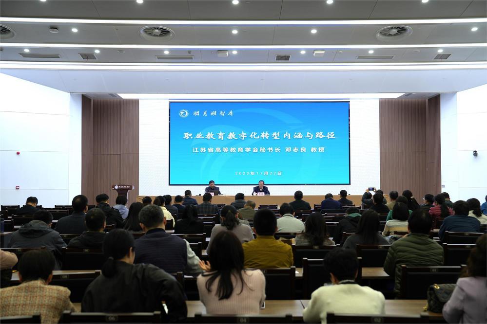 11月22日,由教学督导室承办的明月湖智库论坛在科技综合楼401顺利召开。论坛聚焦职业教育数字化转型,特邀教育部第二届教育信息化专家组成员、教育部“双高计划”项目建设咨询委员会委员、中国职业技术教育学会教育数字化工作委员会执行主任、江苏省信息产业专家委员会委员、江苏省高等教育学会秘书长邓志良教授作《职业教育数字化转型内涵与路径》的专题讲座,讲座由校党委书记马顺圣主持。