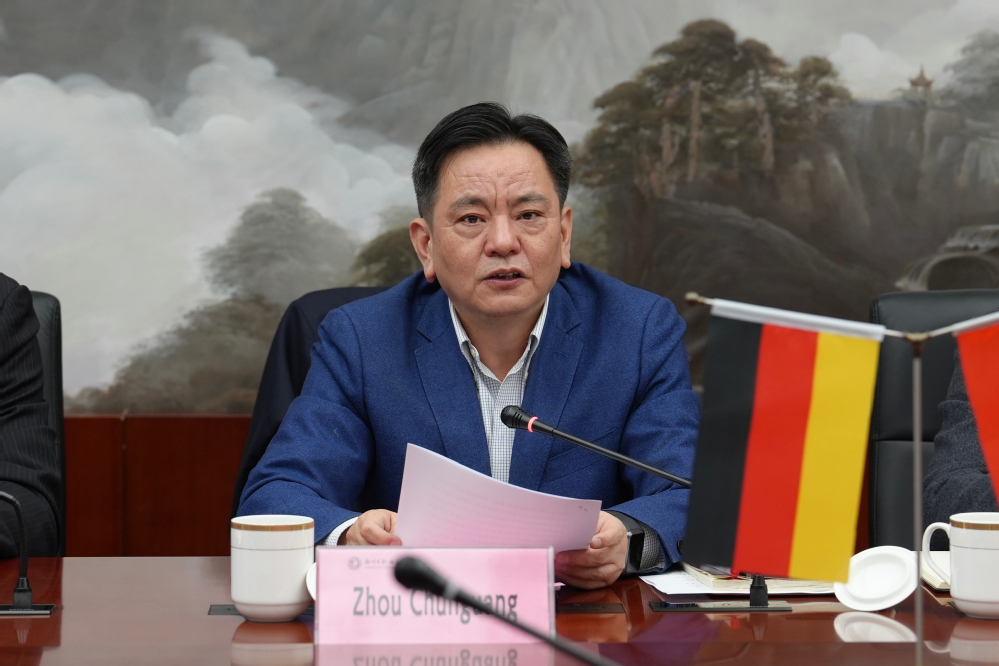周春光在致辞中介绍了我校师资力量、专业设置、国际交流与合作等方面基本情况,并代表学校向柏林健康与运动学院的各位领导表示热烈的欢迎,对两校教育国际交流与合作活动的顺利开展表示由衷的祝贺。最后表达了希望两校能在交流中加深了解,共筑友谊,拓展健康与运动专业合作领域,在文化互通、教师培训、学生培养、职业技能等领域开展多方位的交流合作,共同发展。