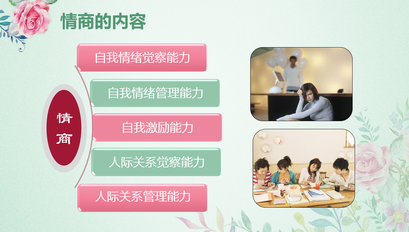 既然了解了情绪管理也需要了解情商EQ的重要:情商是指一个人在情绪方面的管理能力,是指个人对自己情绪的把握和控制,对他人情绪的揣摩和驾驭,以及对人生的乐观程度和面临挫折的承受能力等。