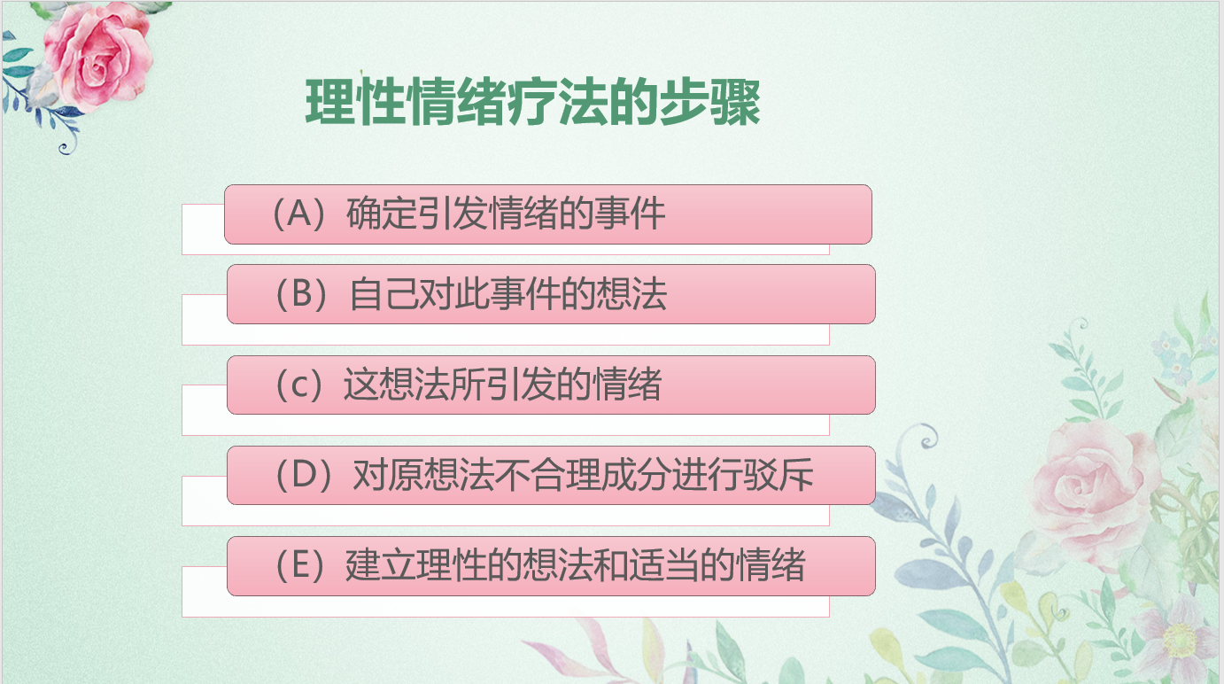 最后是怎样管理自己的情绪。管理情绪有几步呢?分别是及时觉察情绪,正确表达情绪,转化消极情绪以及培养积极情绪。