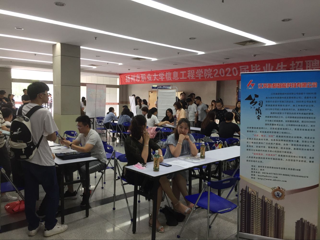 2020届毕业生顶岗实习在即,为搭建毕业生与用人单位的交流平台,信息工程学院于7月3日下午在图书馆一楼大厅举办了“2020届毕业生人才招聘会”,学院党总支和学工办、团委等学生工作负责人全程参与,引导毕业生与用人单位主动交流,毕业班班主任也到现场组织毕业生有序应聘,2017级的300多名计算机应用技术、计算机网络技术及软件技术专业的学生参加了招聘。