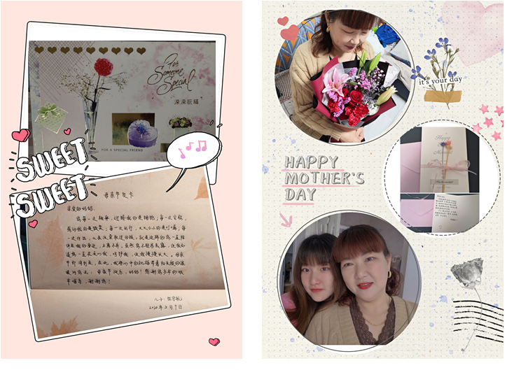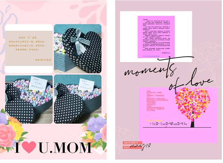 本次活动得到了全院学生的积极响应,同学们通过多种多样的献礼方式表达自己对母亲浓浓的爱意和感恩之情,有写满祝福的爱心卡片、有精心制作的DIY小礼物、有美味的爱心餐、有美丽的鲜花,也有记录母亲动人瞬间的短视频,还有同学利用专业知识,把自己对母亲的爱编在程序里,为母亲“输出”了一份暖心大礼。