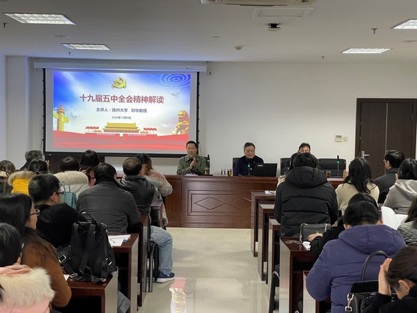 为认真学习贯彻党的十九届五中全会精神,12月9日下午,信息工程学院邀请扬州大学博士生导师、马克思主义学院副院长、“新世纪人才工程”优秀青年骨干教师刘华教授为全体党员和教职工解读十九届五中全会精神。