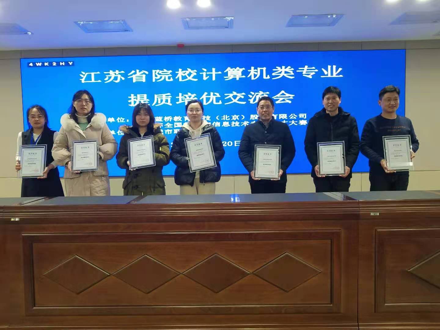 为深入贯彻落实《国家职业教育改革实施方案》和《关于在院校实施“学历证书+若干职业技能等级证书”制度试点方案》的相关要求,积极响应提质培优行动计划,做好新形势下有关“1+X”职业技能等级证书的最新信息发布和全新精神的解读,国信蓝桥联合南京城市职业学院于2021年3月20日举办江苏省院校计算机类专业提质培优交流会。betway必威中文版 作为“1+X”职业技能等级证书的试点院校,本次委派信息工程学院三名教师参会。