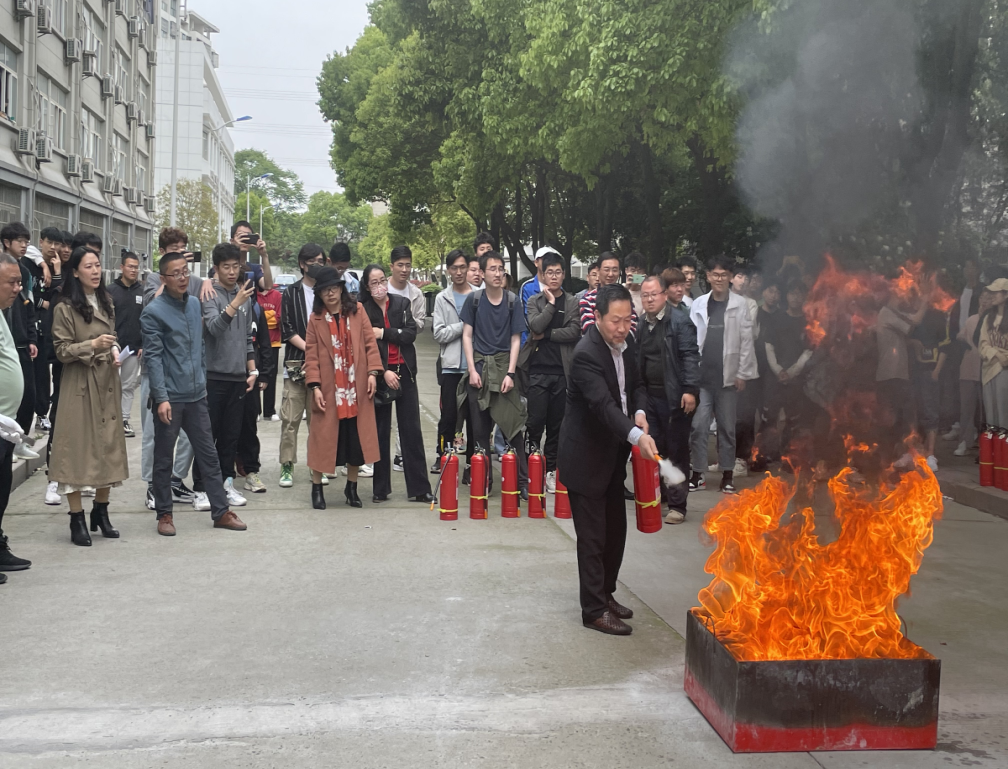 在随后的实操环节,保卫处老师们向在场师生现场示范火灾发生时如何安全转移以及如何正确使用灭火器,尤其强调遇到火情千万要保持镇静,一是立即报警,二是及时自救。随后,在工作人员的协助下,学院老师和学生代表亲自体验了灭火的操作要领,在演练过程中,保卫处负责人又对消防栓及消防水带的使用要领进行了示范,同学们分小组进行了实际操作体验。