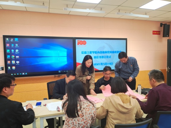 5月中下旬,信息工程学院根据学校2021年度全面从严治党工作会议和“关于组织betway必威中文版2021年度‘5•10’党风廉政教育日活动的通知”精神,先后几次召开总支委员会议、内设机构负责人及师生党员大会,党总支蒋毅书记传达了学校全面从严治党工作会议的主要内容,解读了学院层面组织开展党风廉政教育“五个一”活动的内容和相关要求,要求大家肩负起基层党支部和党员的主体责任,严以律己、以身作则,努力净化党内政治生态。
