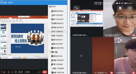 “疫情当教材,云端谈未来”,这样的“云班会”,以别样的形式给同学们留下了特别的印象。一次班会就是一声号角,一名青年意味着一份担当。时代赋予的青春使命,不仅体现在打赢这场全民战“疫”中,更体现在实现中华民族复兴的伟大征程中。没有一个酷夏不会过去,也没有一个金秋不会到来,待到重聚校园时,让我们再话师生情、畅谈未来梦。