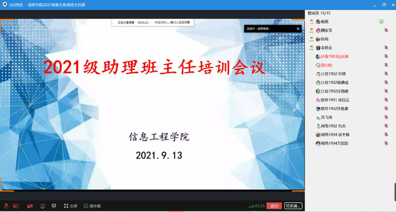 为帮助2021级新生尽快适应环境、转变角色、明确目标,信息工程学院通过报名、审核、考察等一系列环节的前期准备,选拔了11名品学兼优的大三学生担任班主任助理。这些助理班主任,由于与刚入学的新生年龄上相仿、专业上接近,在帮助新生更好更快地适应高校学习、生活方面有着显著优势。为了使他们进一步明确工作职责、找准自身定位、提升业务能力,在学院党总支组织下,9月13日,院总支副书记、学工办主任、团委书记等4名专职辅导员老师对他们进行了岗前培训。老师们结合多年的学生管理经验,围绕“如何成为一名出色的助理班主任”这一主题,从“做新生思想的引领者、做新生专业学习的引航员、做新生大学生活的引路人”三大层面进行了细致的讲解,同时要求大家务必在“树立良好形象、认真履行职责、严格规范言行”上下功夫。