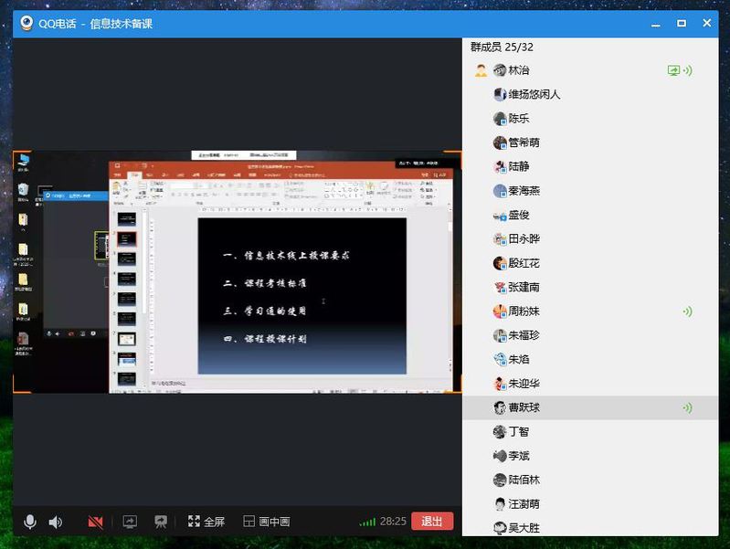 本学期《计算机信息技术》公共课程共涉及13个学院、103个班级、32名教师,为了帮助老师们更好地完成线上教学工作,10月8号上午10点由基础教学部牵头,借助腾讯会议平台开展了线上研讨,所有任课老师都能积极参加此次活动。