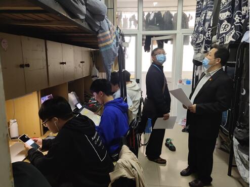 27号上午9点起,六个小组共进入21级91个宿舍、20级92个宿舍、19级94个宿舍进行了实地察看,了解同学们对待线上教学的态度、教师线上授课的方式和效果等方面情况,经调查,大部分同学表示能够理解和接受学校目前的封闭管理模式,能适应线上学习和师生交流方式,也能按时起床,坐到书桌前,打开笔记本或手机,认真听讲。学生党员和干部在各自的宿舍中也起到一定的带头示范作用,互帮互助的气氛较为浓厚,同学们表示会按照班主任近期召开的主题班会的要求,严格遵守学校相关管理规定。不过,在巡查过程中,检查人员也发现有个别学生边听课边打游戏,对此,检查组老师们都给予了及时纠正和批评,同时立即反馈给班主任,要求跟进督促改进学习习惯。