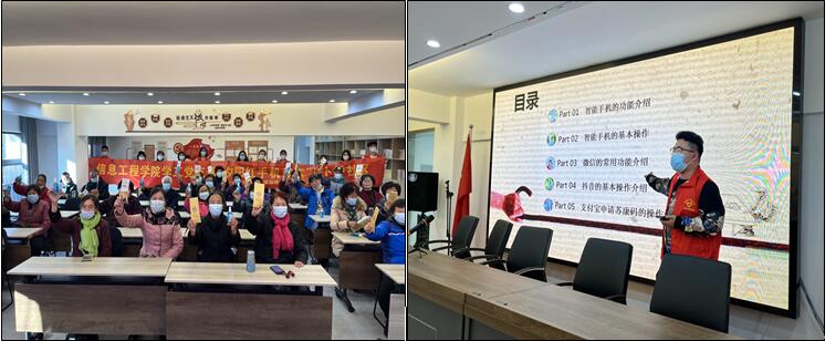 为把开展“两在两同”建新功行动与深化“我为群众办实事”实践活动有机融合,持续推进党史学习教育走深走实,11月24日下午,在学院党总支统一部署下,信息工程学院学工党支部师生党员前往扬州市邗江区双桥街道卜桥社区开展“夕阳红手机课堂”活动,教老年人使用智能手机,该活动系学院基层党支部与社区党支部结对共建特色活动之一。