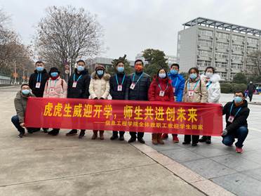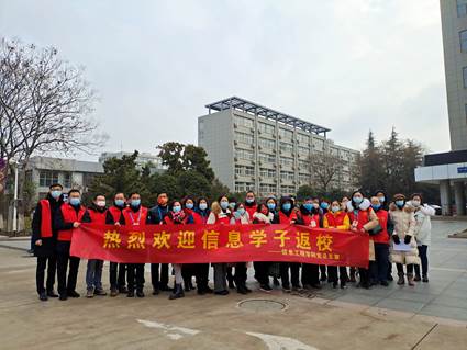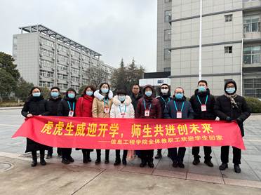 2022年2月19日,信息工程学院迎来春季学期第一批返校同学。学院上下高度重视开学疫情防控等工作,为帮助同学们顺利返校,提前制定了周密的预案,部署了详细的工作安排。返校当天,虽已迈入春天,但寒风依旧刺骨。不过,信息学院领导班子带领所有班主任、辅导员老师以及部分党员教师七点准时守候在生活区南门口,以温暖而又激动的心情等待着学生们的归来。
