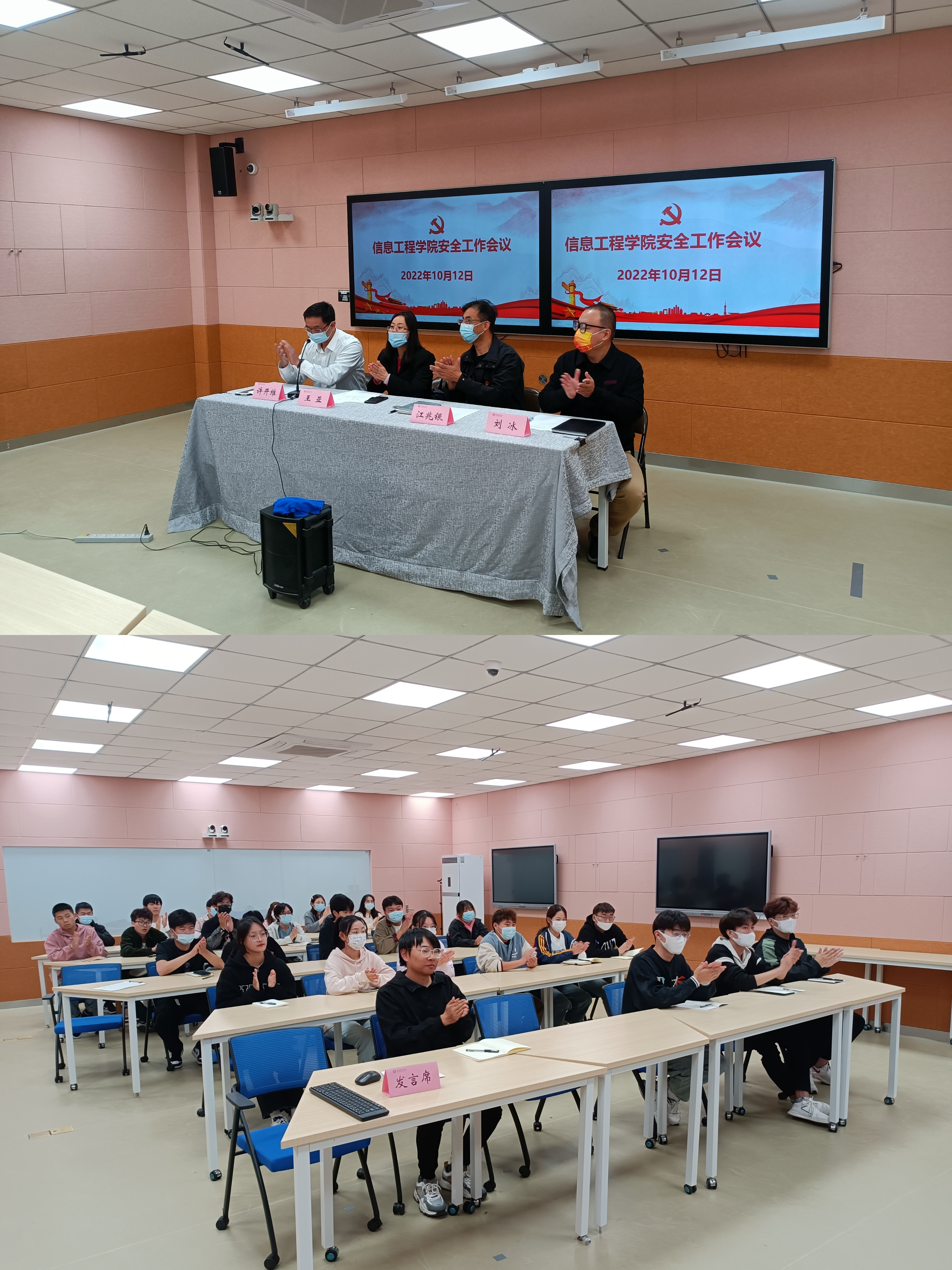 会上,信息工程学院领导还就安全工作进行了部署。学院教职工代表与学生干部代表参加了会议。