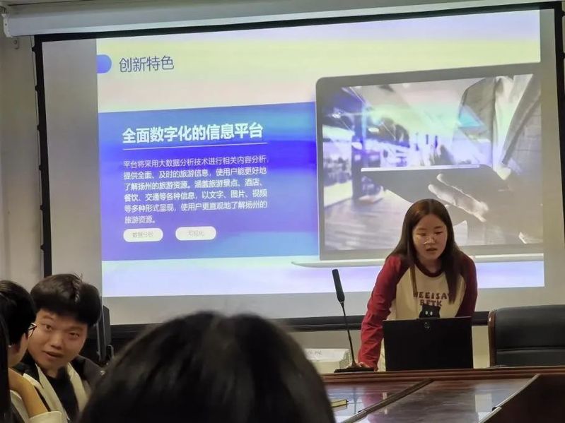 培训开始后,参赛同学首先分组汇报了各个小组的项目完成进度。之后,各小组主持人进行了项目PPT展示。两位老师在听取了各组的汇报后,对每个小组的汇报进行了点评,并且提出了相应的修改建议。两位老师通过实际案例,为同学们详细解读了项目的选题、实施过程以及成果展示等方面的成功经验,并重点讲解了申报书的撰写技巧。他们指出,申报书是立项的关键,好的申报书不仅要明确目标、突出创新点,还要有切实可行的实施方案和预期成果。最后,两位老师结合各个项目具体情况,详细阐述了如何挖掘和突出项目特色、如何制定合理的项目计划以及如何撰写高质量的申报书。