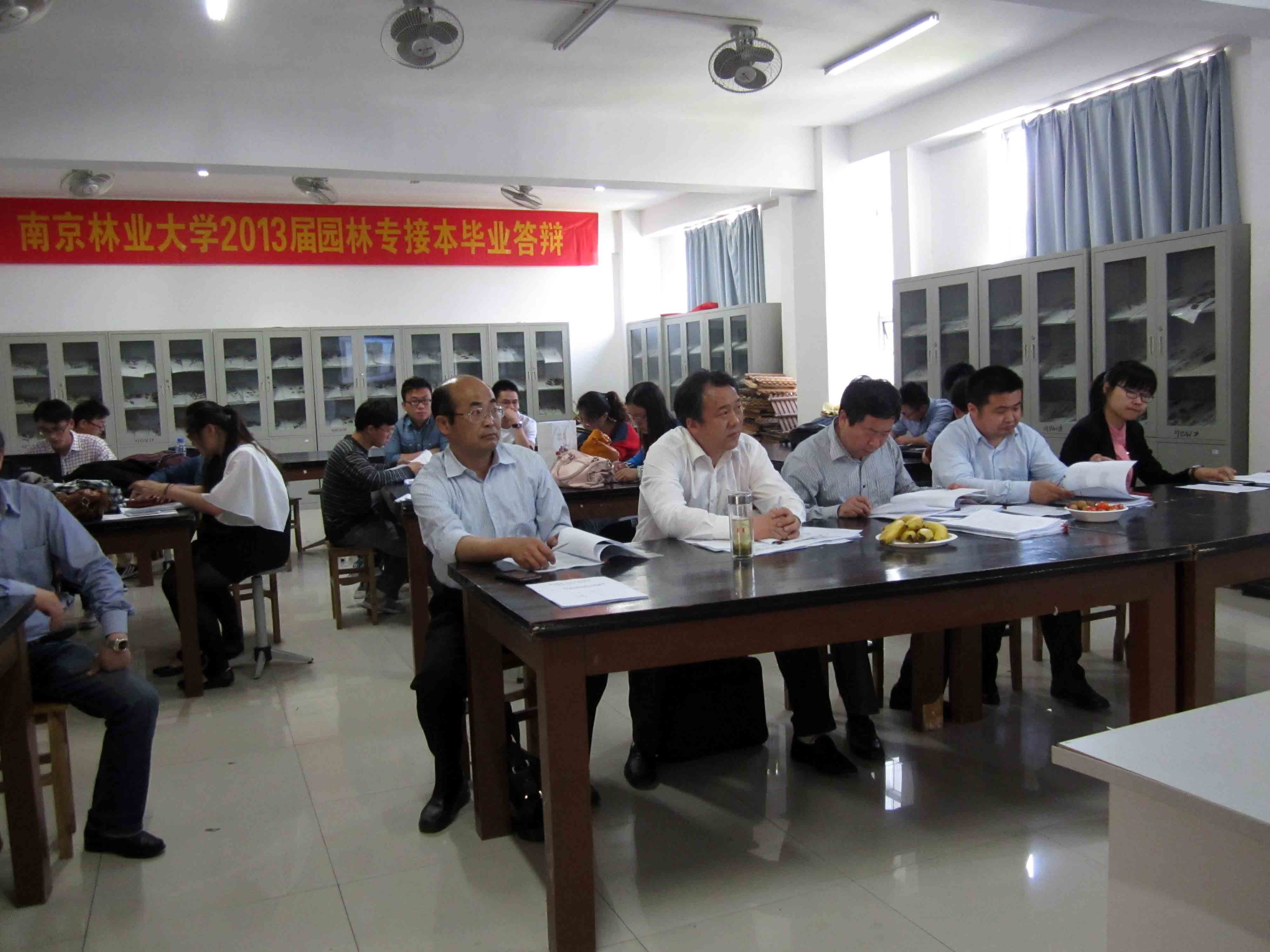 2013年5月12日,2013届南京林业大学园林专业专接本毕业答辩在扬子津校区顺利完成,南京林业大学王良桂教授、梁礼才教授、陈正龙主任莅临我院,参与答辩,与13届同学进行了深入的学术交流。