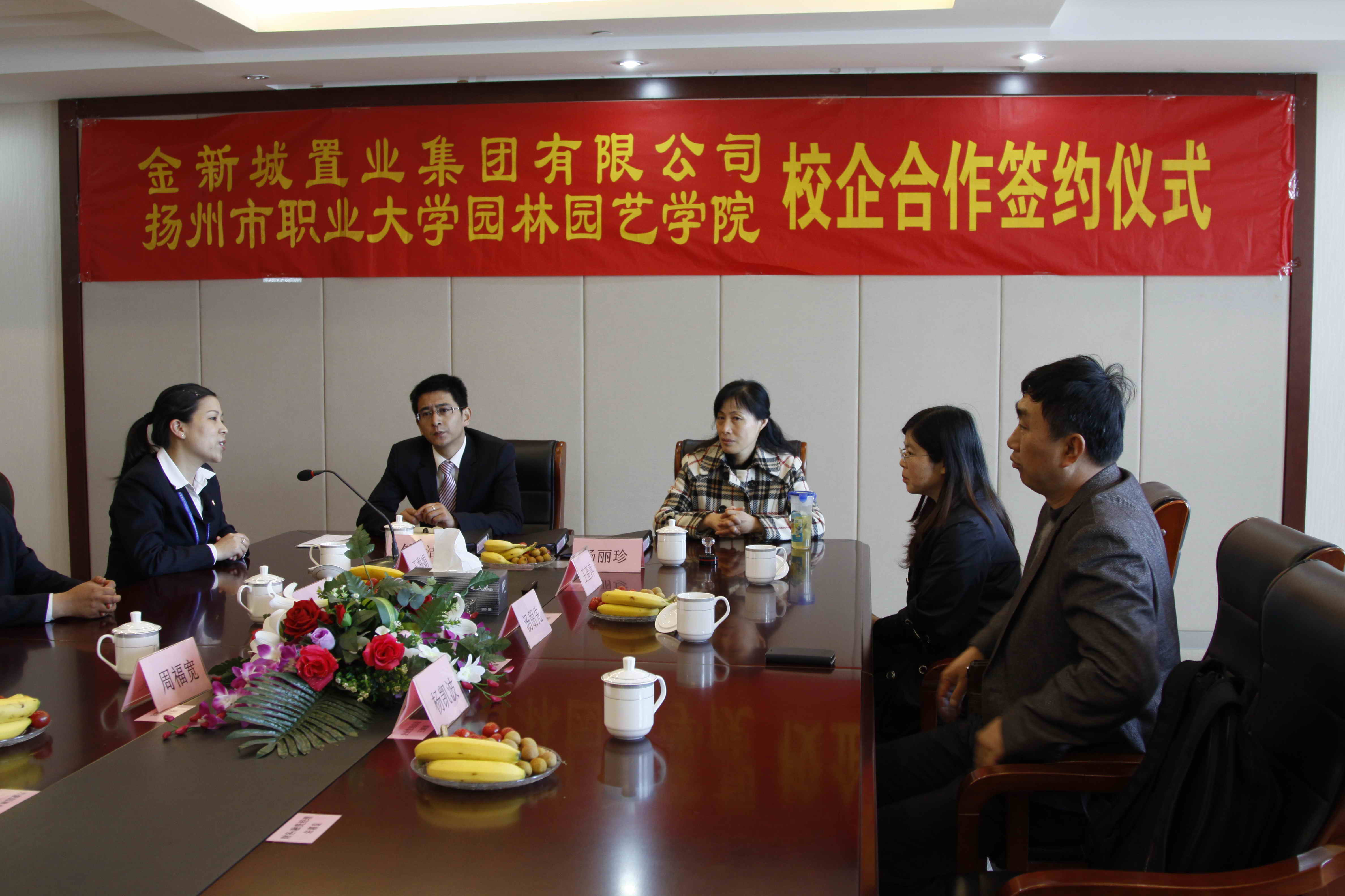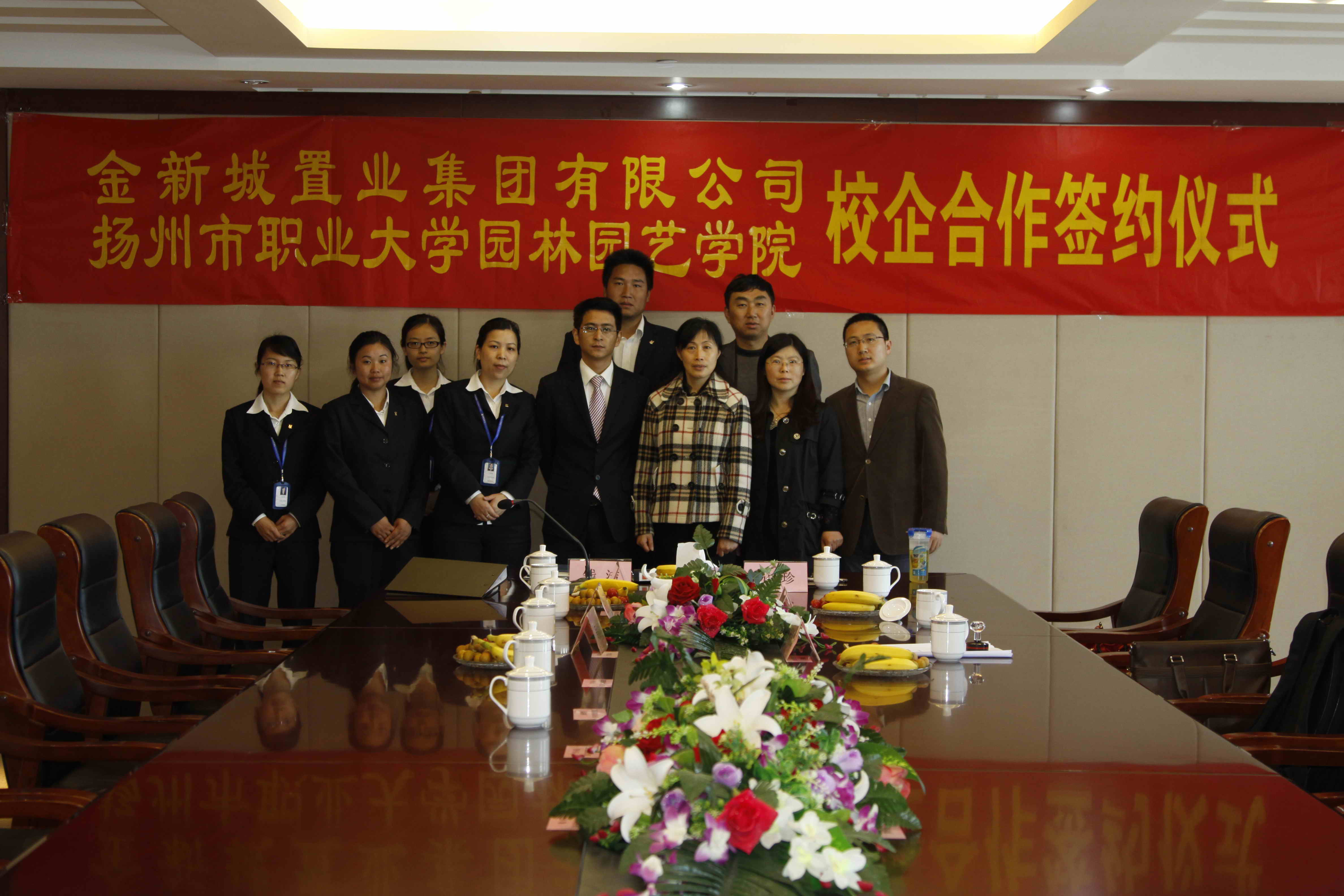为贯彻党的群众路线,以及全面筹备升格扬州科技学院之际,2014年4月3日,我院领导班子前往张家港市与张家港最大的房地产开发公司--金新城置业集团有限公司签订了全面校企合作协议。