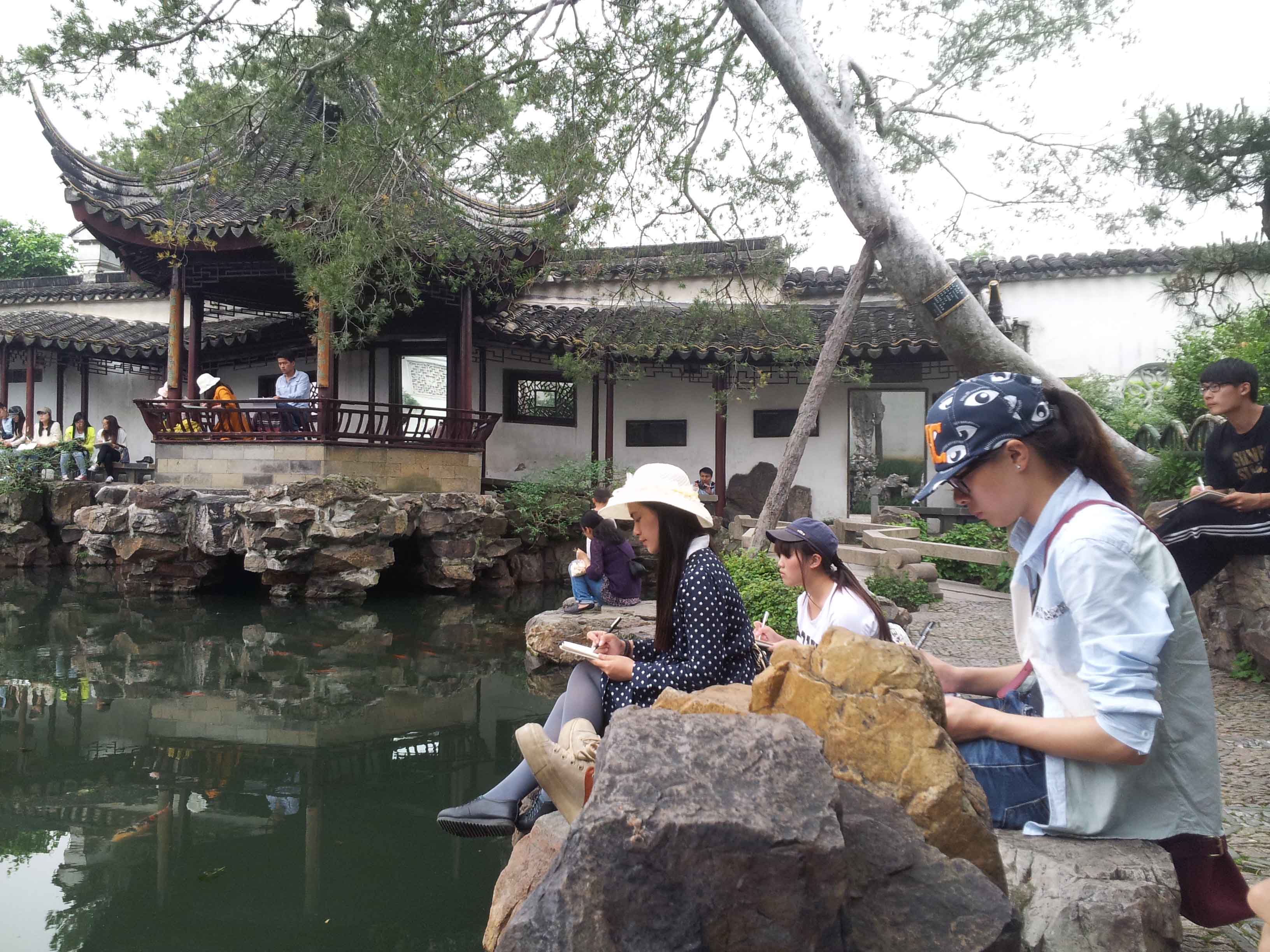 实习期间,同学们通过对江南私家园林的实地考察,实地测量以及钢笔写生等任务,全面系统地了解江南私家园林的造景艺术。