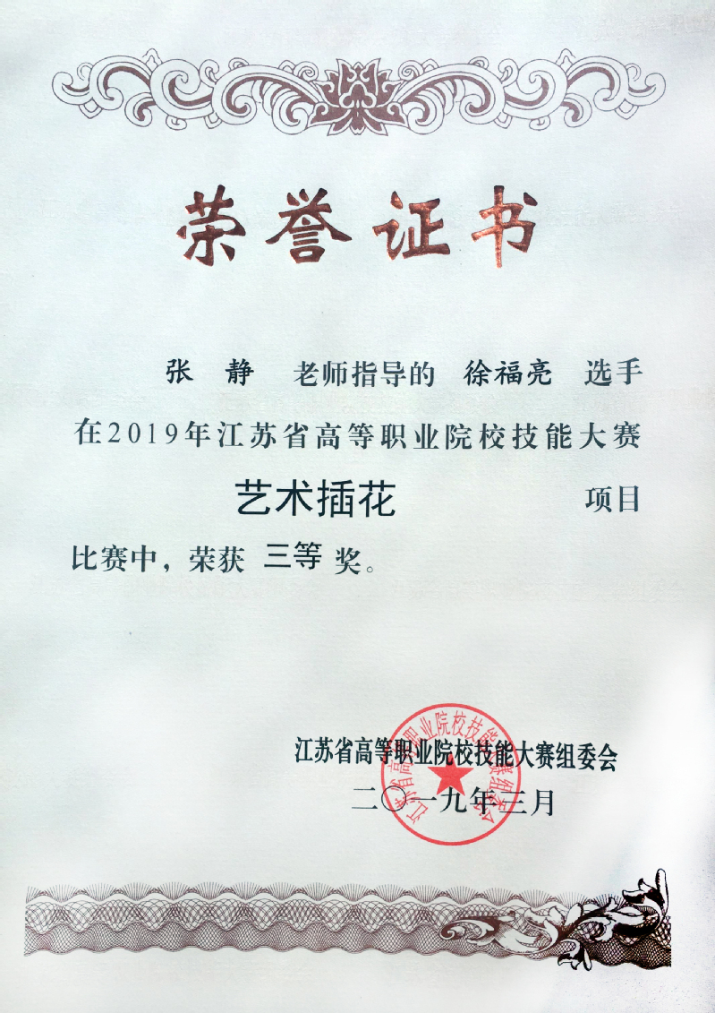 3月8日-11日,由江苏省教育厅主办的2019年江苏省高等职业院校技能大赛“艺术插花”、“园林景观设计与施工”项目在江苏农林职业技术学院举行。我院师生通行协力,历时近三个月的精心备战,由李丽、张静老师指导的“艺术插花”项目分获二等奖、三等奖;卢燕、张婷婷老师指导的“园林景观设计与施工”项目获得三等奖。